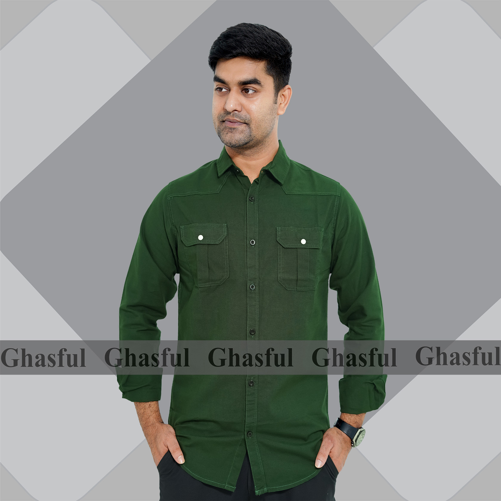 Long Sleeve Double Pocket Oxford Shirt_ Pest _Teal_ Green & Kathali.