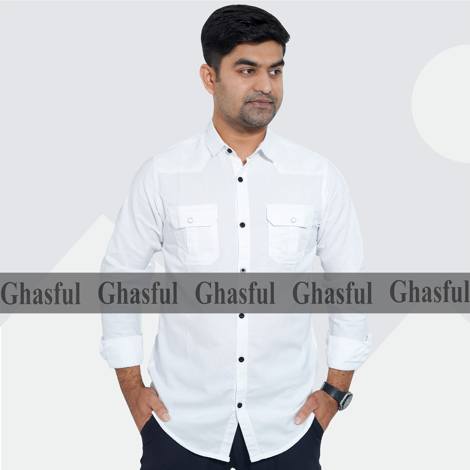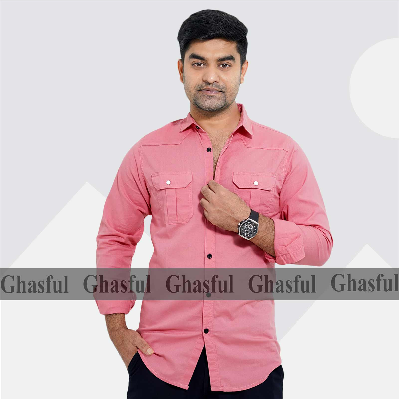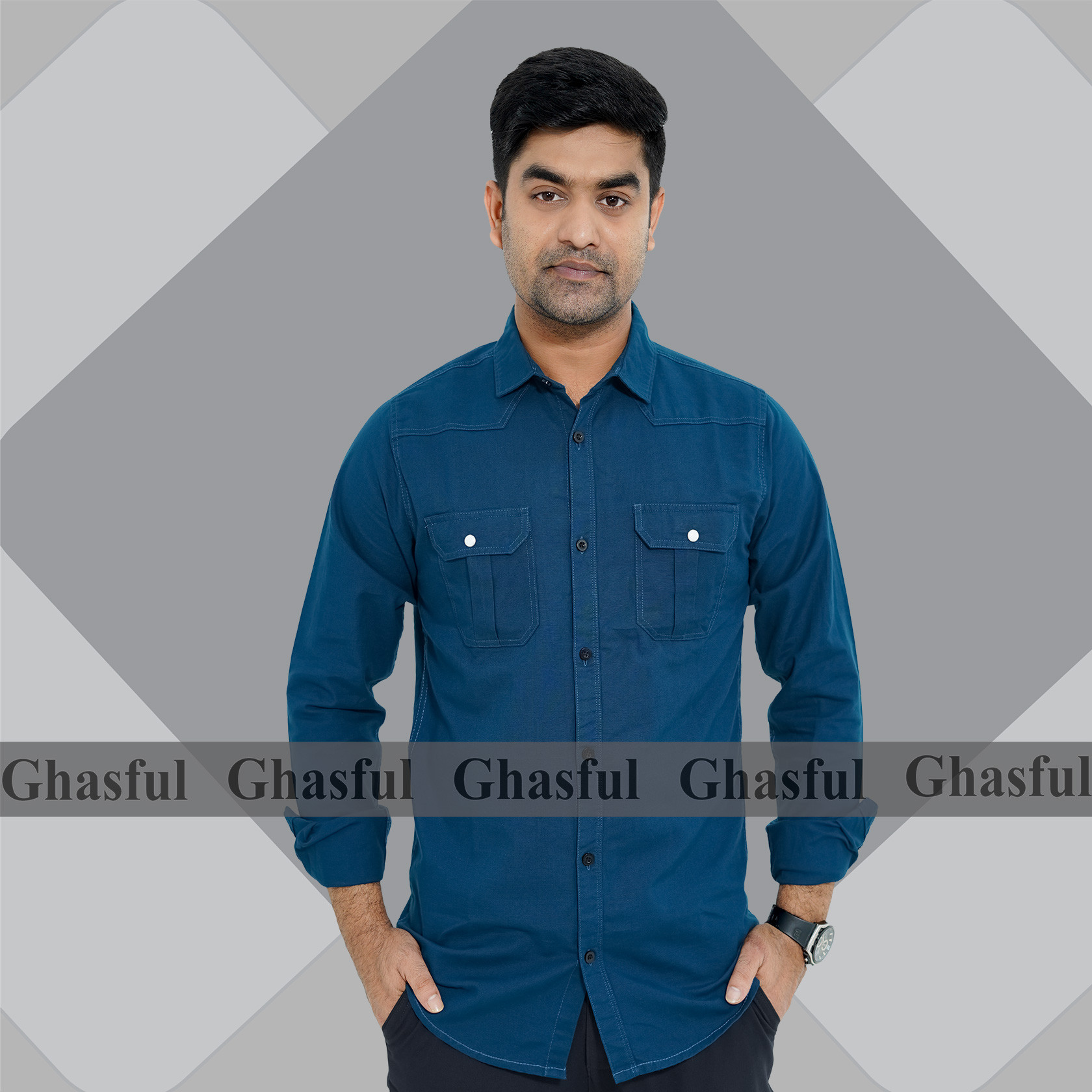 Long Sleeve Double Pocket Oxford Shirt_ Kathali _ Teal_ White & Pink.