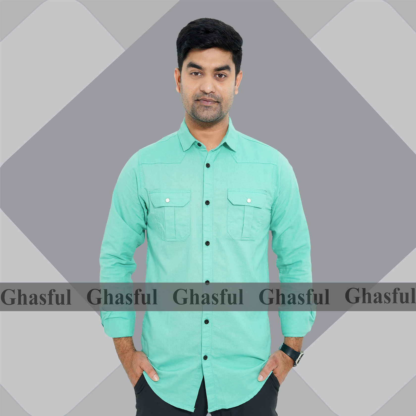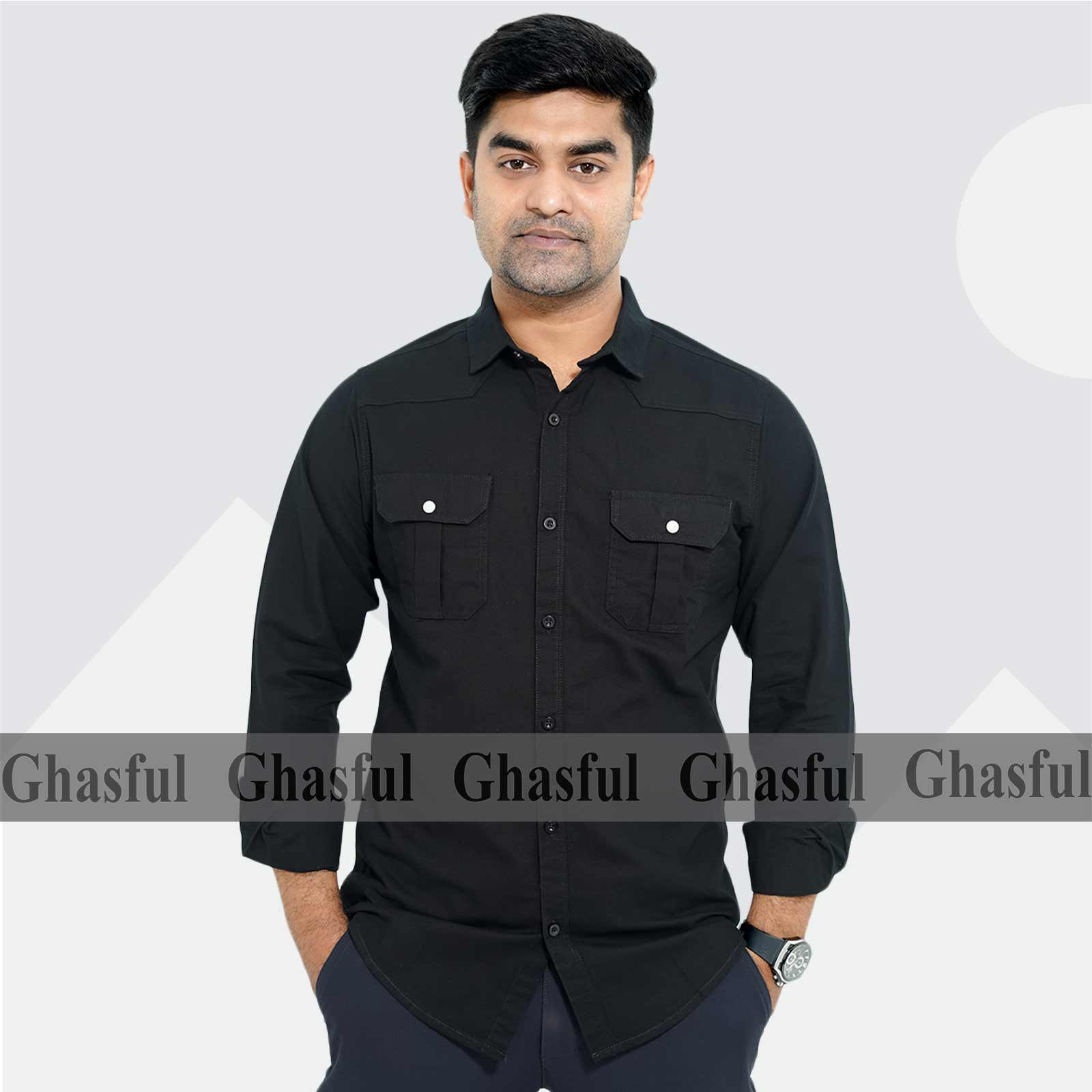 Long Sleeve Double Pocket Oxford Shirt _Black _ Kathali _White & Pest.