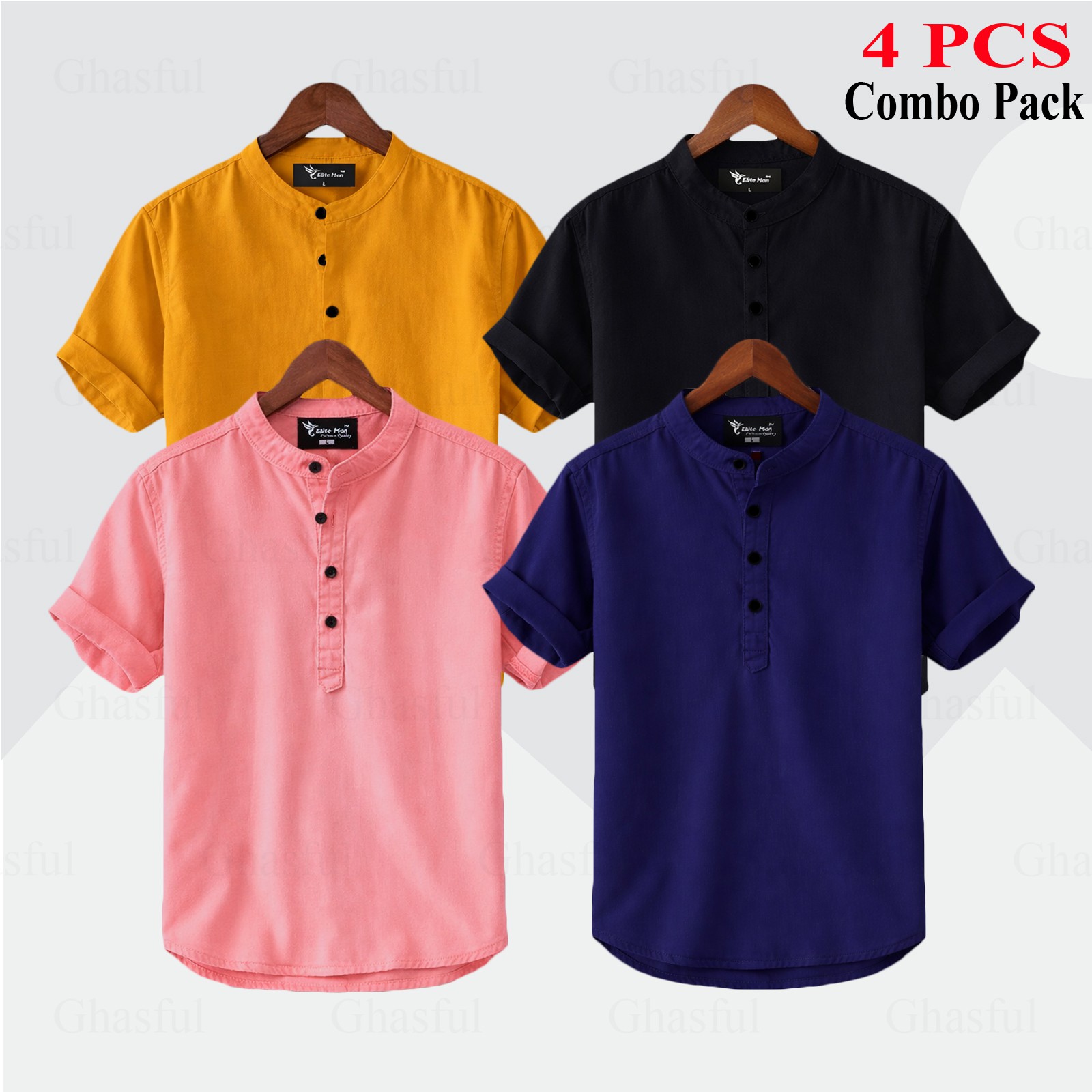 Oxford Cotton Fabrics Short Sleeve Katua For Men's_ Black_Nevy_ Pink _ Kathali .