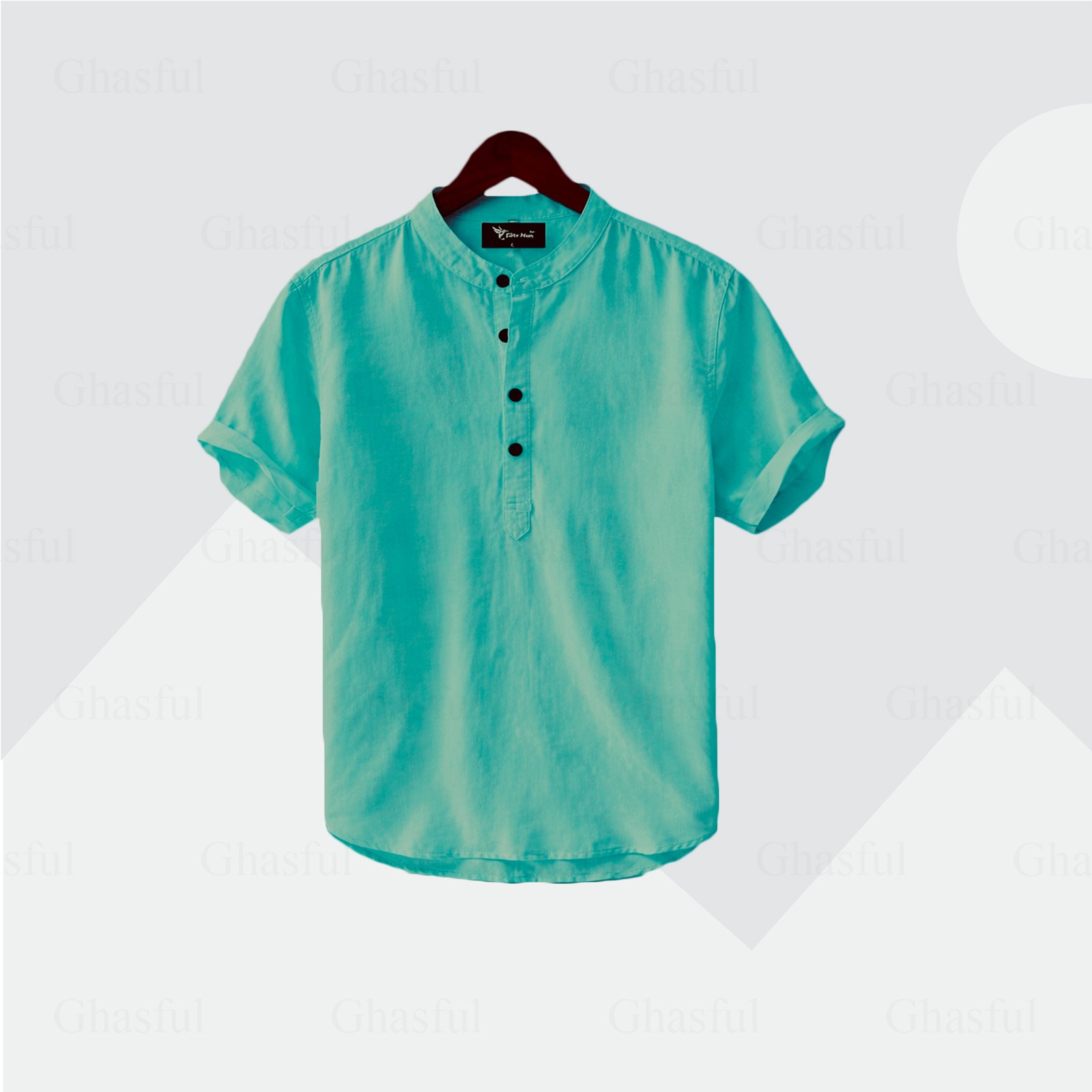 Oxford Cotton Fabrics Short Sleeve Katua For Men's_ Black_ Pink_ Sky Blue _ Pest.