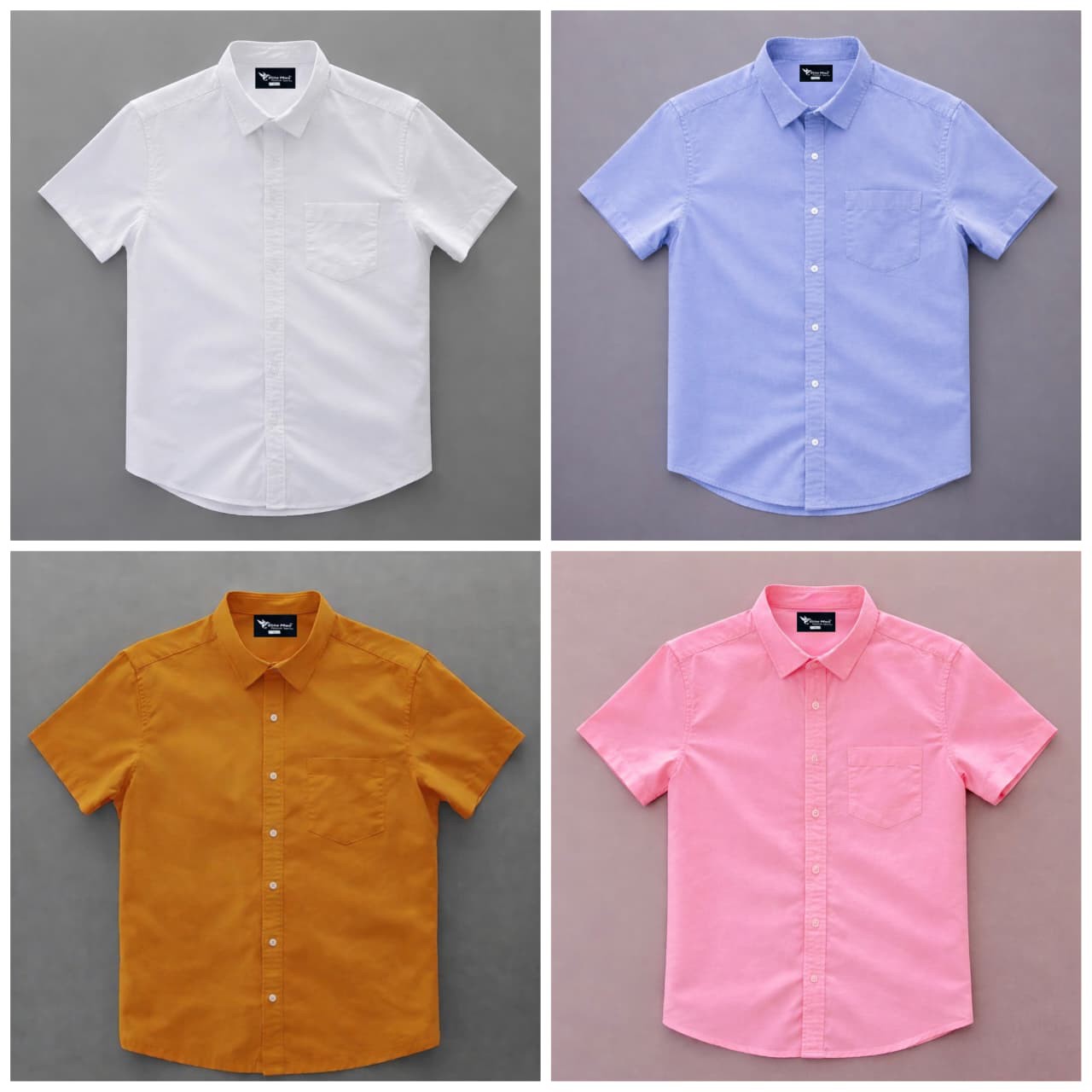 Oxford Cotton Febric Short Sleeve Shirt _ Pink _ Kathali _ White _ Sky
