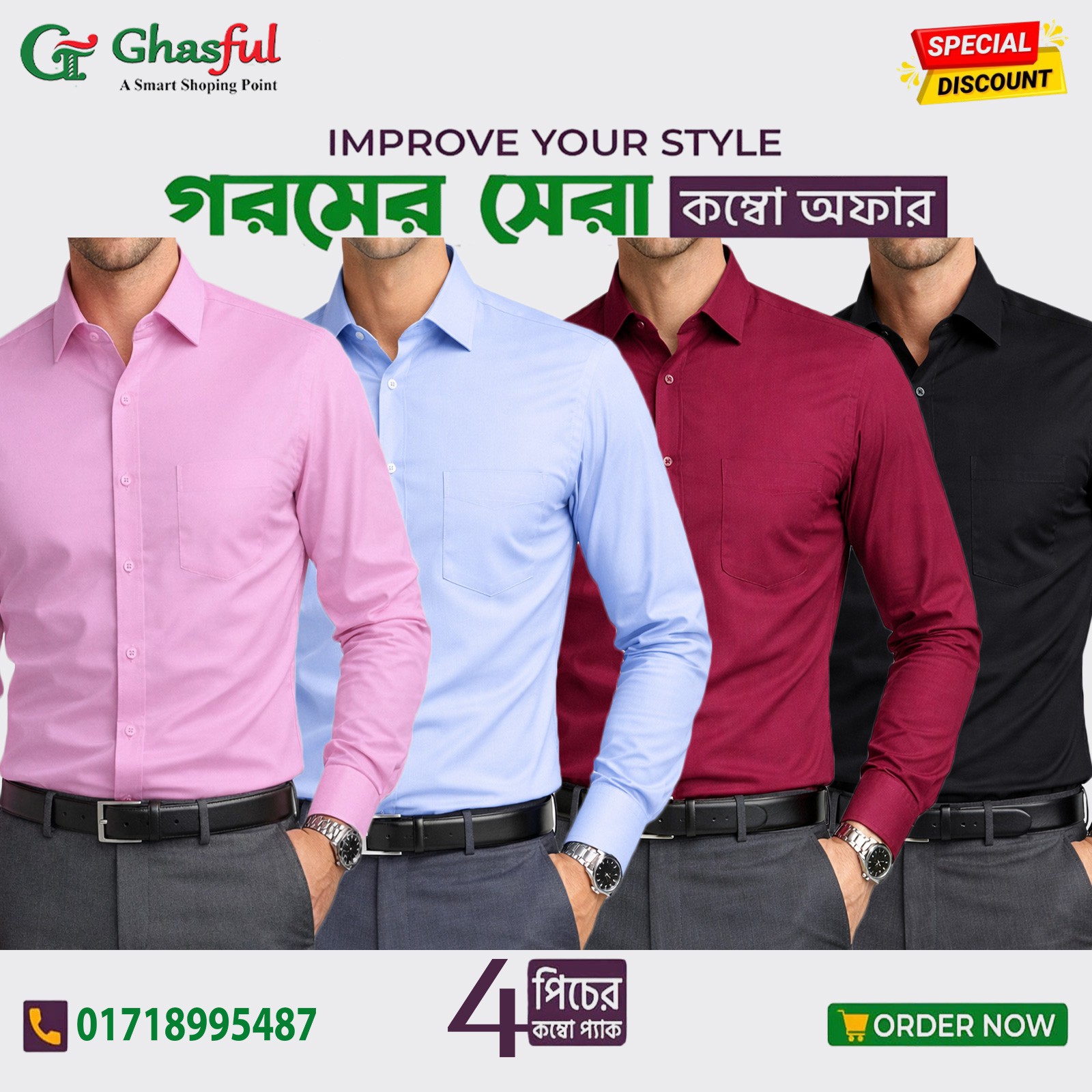 Fine Cotton Formal Shirt _ Black _ Sky _ Pink & Merun