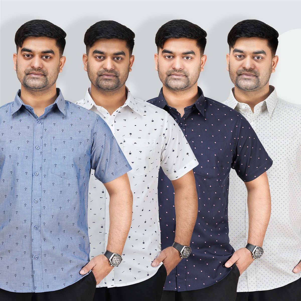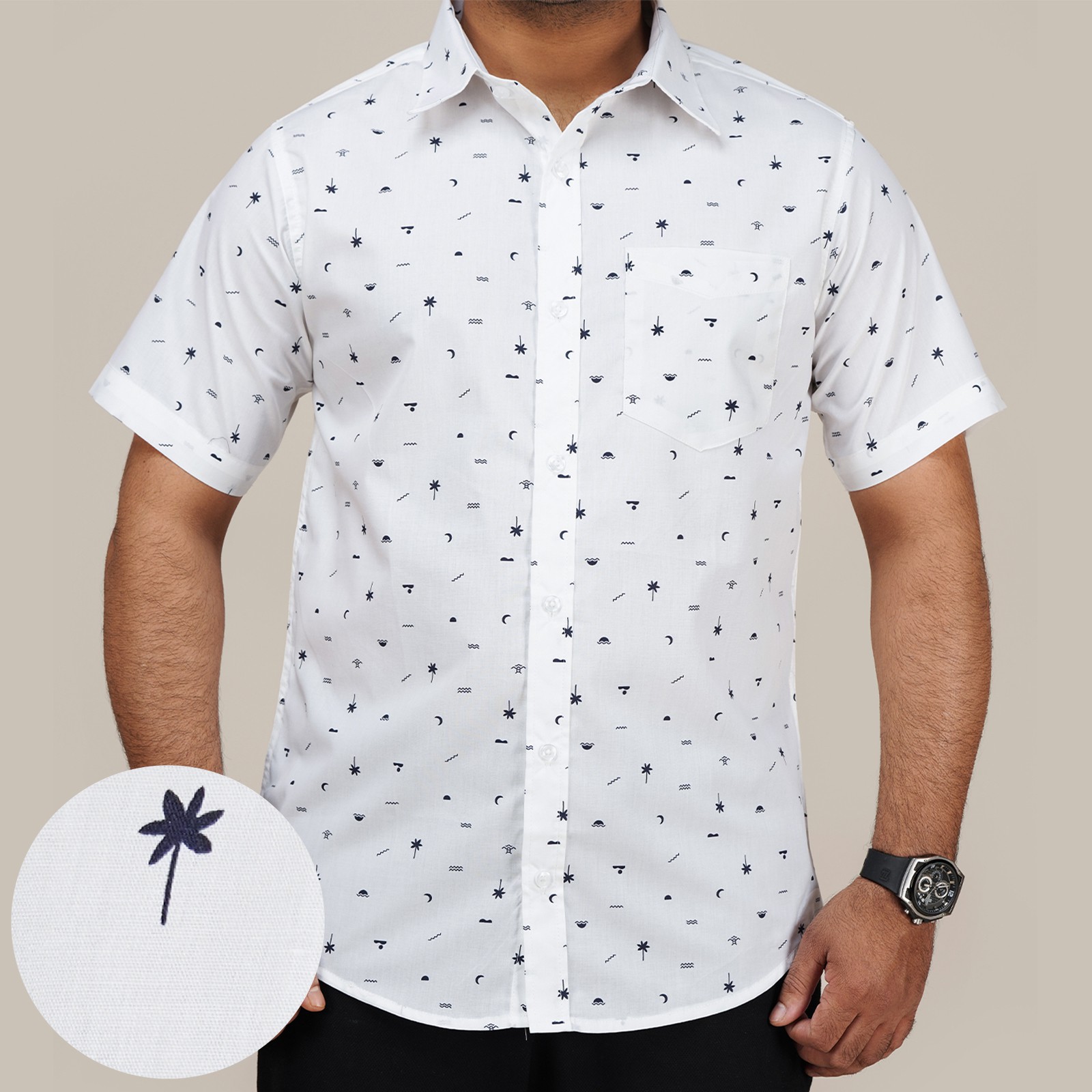 Showroom Quality Printed Shirt _ Sky _ White Multi _ Nevy _ Lemon